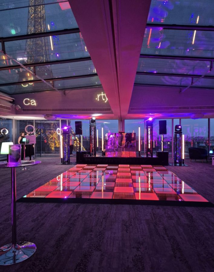 Apportez une touche spectaculaire à vos événements grâce à notre piste de danse LED 5×5 mètres, disponible à la location à La Rochelle et Paris. Véritable animation visuelle, elle transforme instantanément vos soirées en une expérience immersive et mémorable.