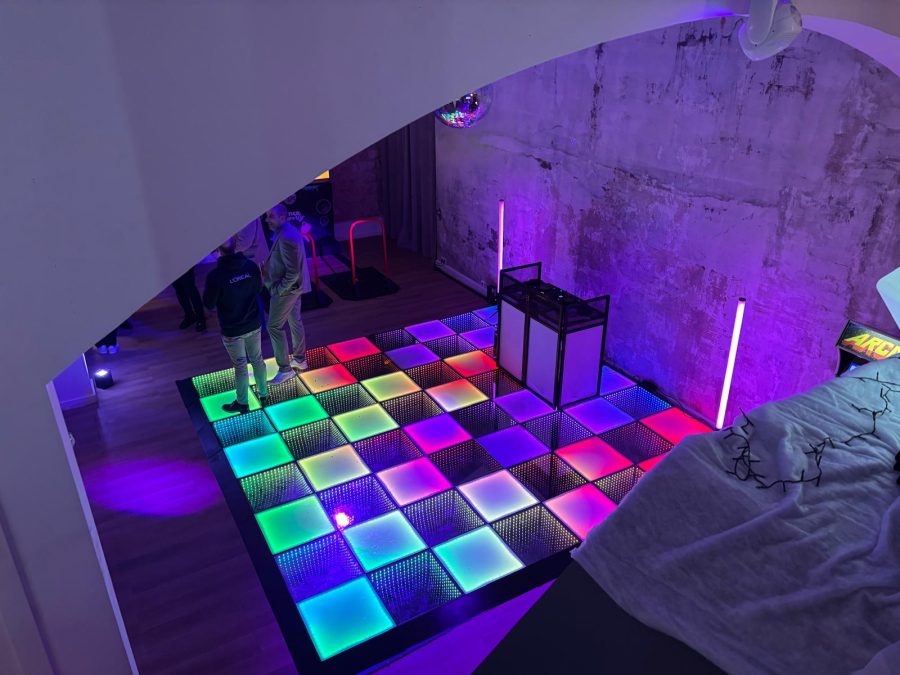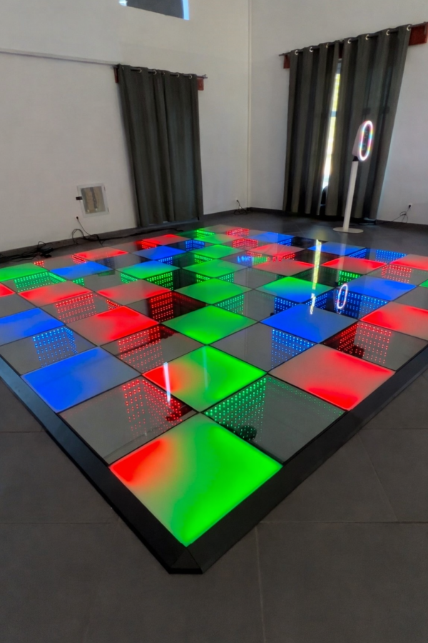 Idéale pour les mariages, soirées privées, événements d’entreprise, DJ sets ou cocktails dansants, la piste de danse LED crée une ambiance moderne, élégante et dynamique. Chaque pas déclenche un jeu de lumières captivant, offrant un rendu spectaculaire aussi bien pour les invités que pour les photos et vidéos.